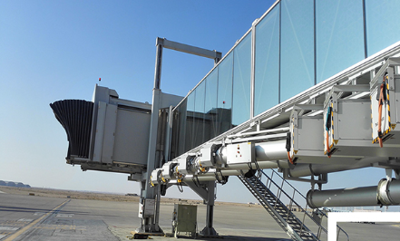 A380登機橋二層U1超高艙門而設計的登機橋,采用了行業(yè)內(nèi)首創(chuàng)的四輪驅(qū)動行走機構(gòu)及其控制系統(tǒng)。